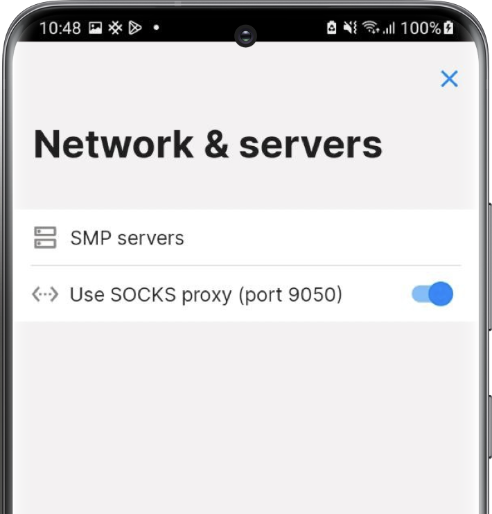 Network & Servers / Use SOCKS proxysetting in the app to access SimpleX servers via Tor. - iOS app can also be used with Orbot iOS app (that is installed as a system-wide VPN provider). The only setting you might need to change is to increase network timeouts in the app - to do that you have to enable