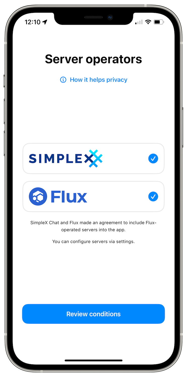 When both SimpleX Chat and Flux servers are enabled, the app will use servers of both operators in each connection to receive messages and for private message routing, increasing metadata privacy for all users.